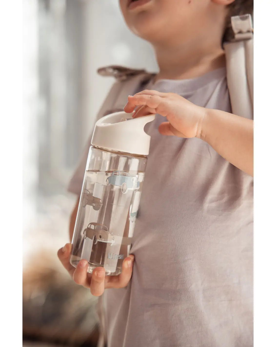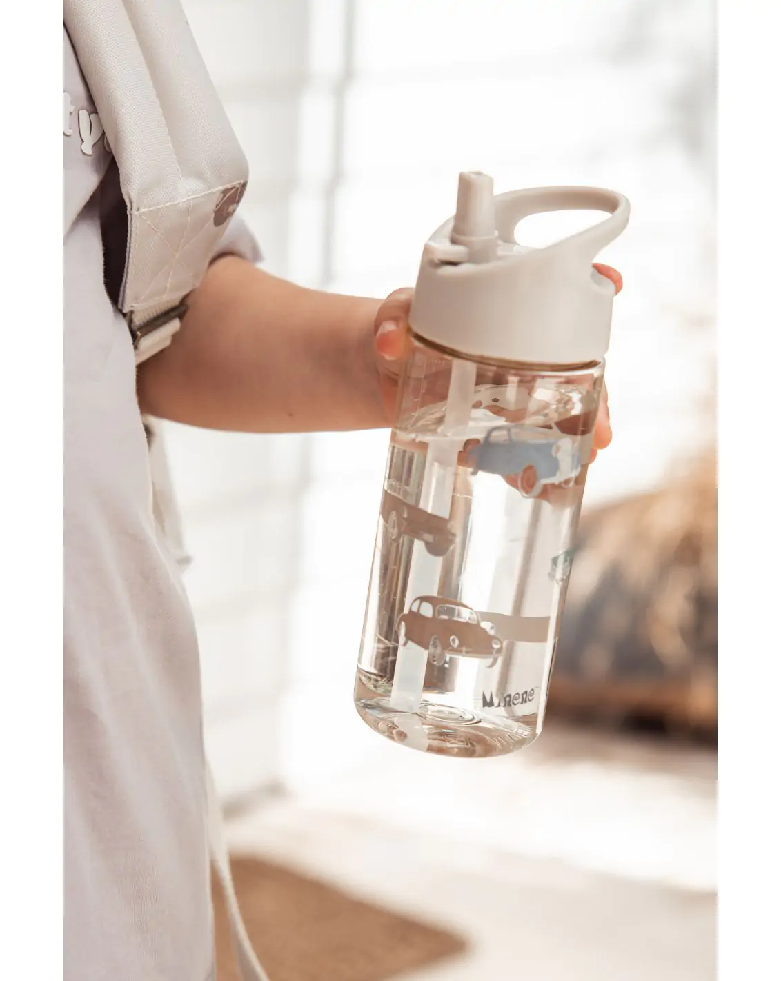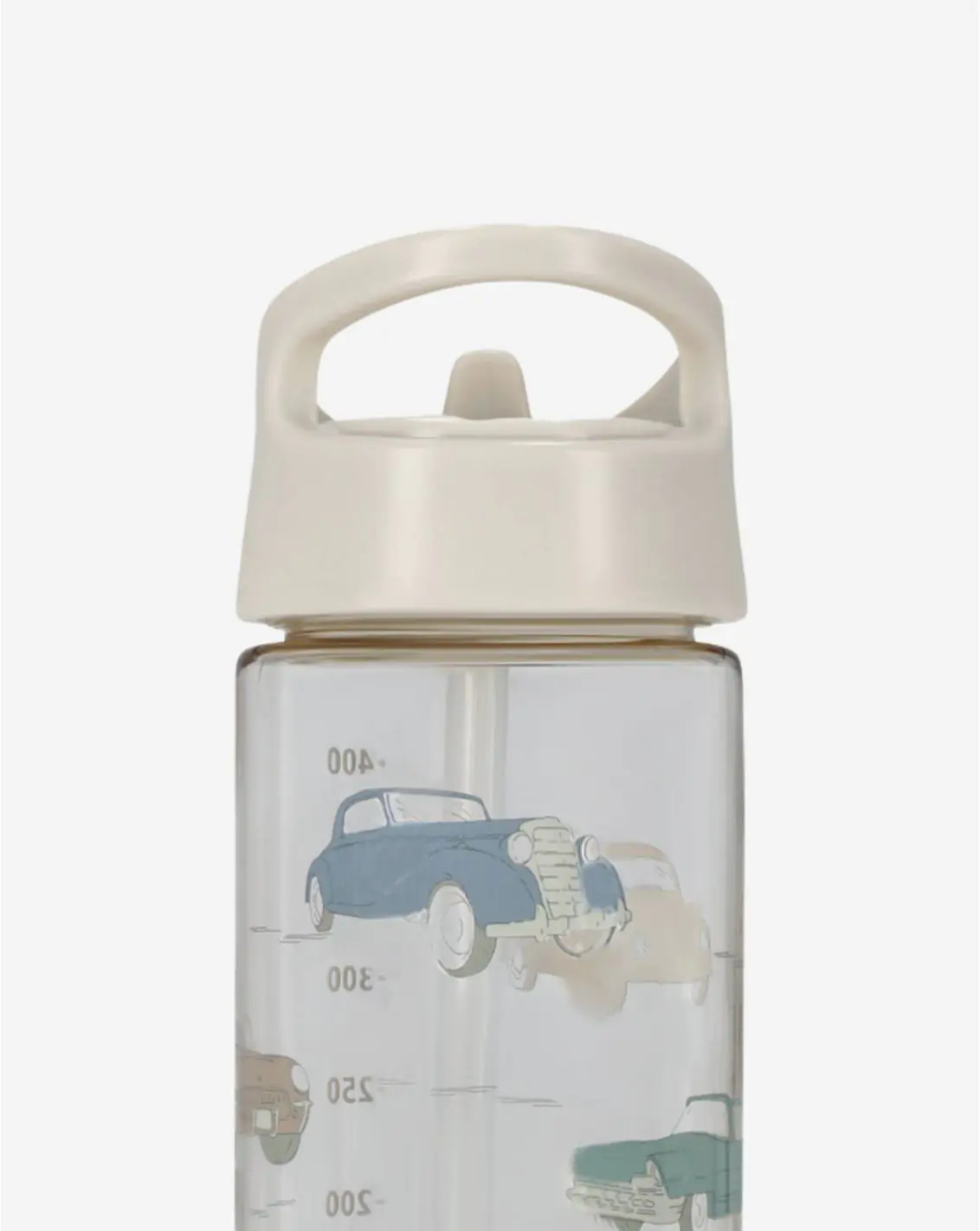 בקבוק מים לילדים עם קש בעיצוב מהמם של הדפס מכוניות.