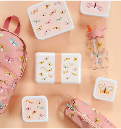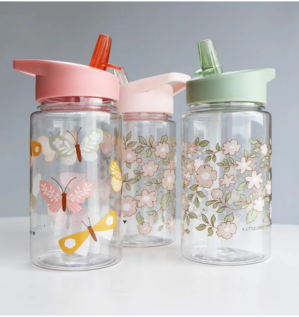 בקבוק מים לילדים עם קש בעיצוב מהמם של הדפס פרפרים.