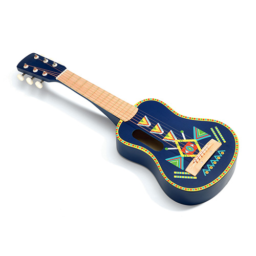 גיטרה מעץ לילדים יפהפיה ואיכותית, עם 6 מיתרים ממתכת.