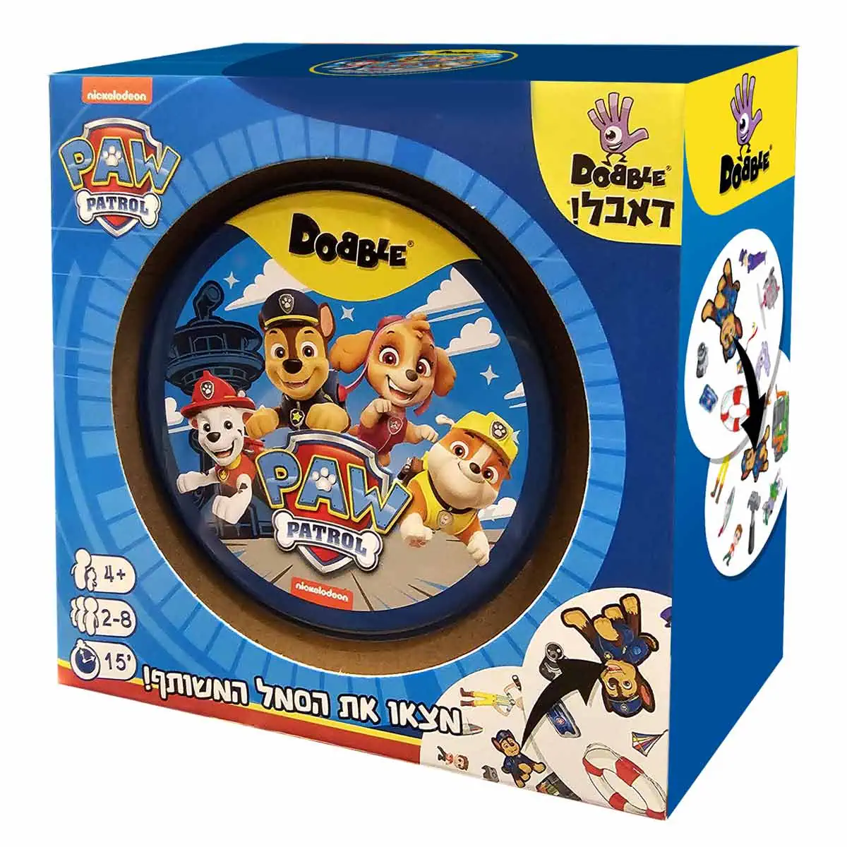 מכיל 55 קלפים, 8 סמלים על כל קלף, ותמיד יהיה רק סמל אחד משותף בין כל זוג קלפים שתבחרו!