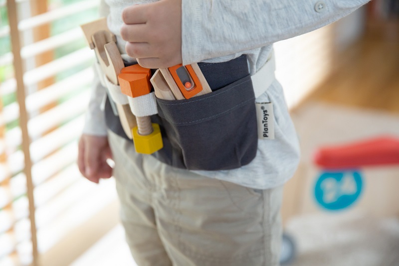 עם כלי עבודה מעץ לילדים אפשר לתקן ולהרכיב הכל. חגורת כלי העבודה של Plan Toys הכוללת: פטיש, מברג, מפתח ברגים, ופלס. הילדים מתאמנים ומדמיינים תוך כדי השימוש בכלים, בעזרת אום, בורג ואפילו פלס הכלולים גם כן בערכה. הכלים עשויים עץ ומגיעים בתוך חגורת בד איכותית ועמידה לקשירה סביב המותנים.