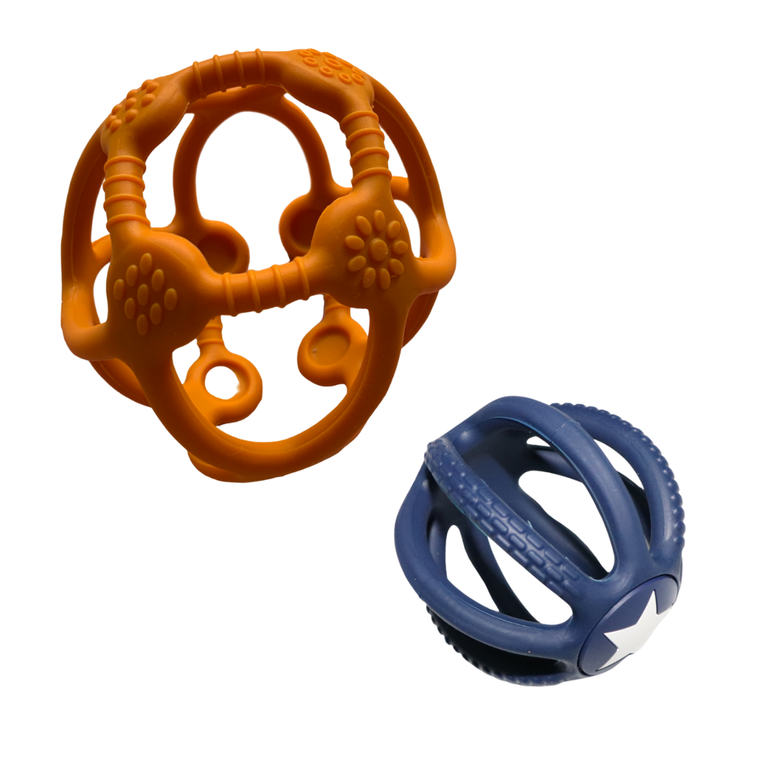 כדור שני חושי, נקי מחומרים כימיים, עשוי סיליקון רך שהתינוקות יכולים ללעוס, הוא בטוח ומרגיע את החניכיים.