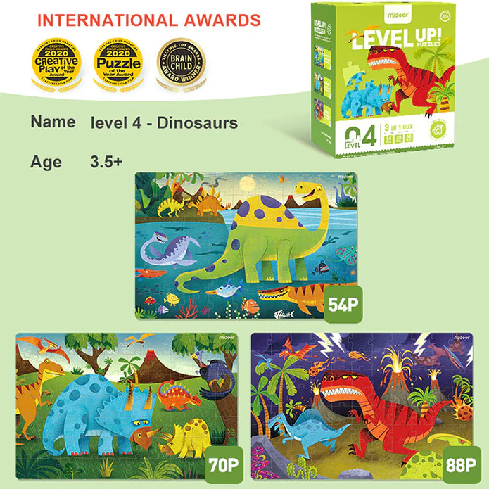 פאזלים לילדים מארז LEVEL UP (3 יח') – שלב 4 דינוזאורים