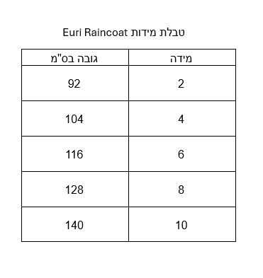 מצורפת טבלת מידות בגלריית התמונות.
