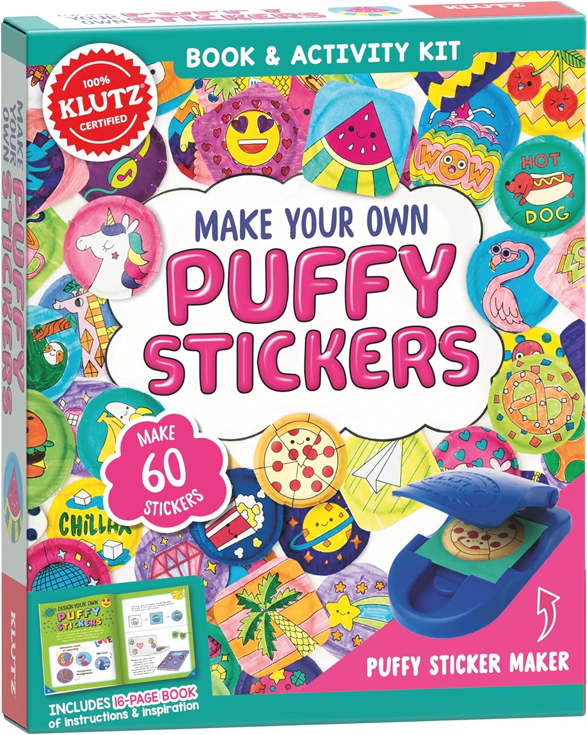 ערכת יצירה להכנת מדבקות תלת מימד, מכינים 60 מדבקות תלת מימדיות מגניבות (שאינן שטוחות כמו מדבקות רגילות) בעזרת מתקן ידני מיוחד הכלול בספר.