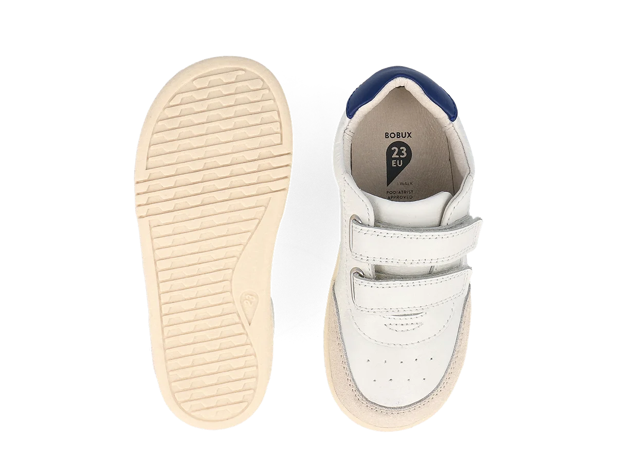 נעלי צעד שני בובוקס BOBUX – לבן כיתוב כחול