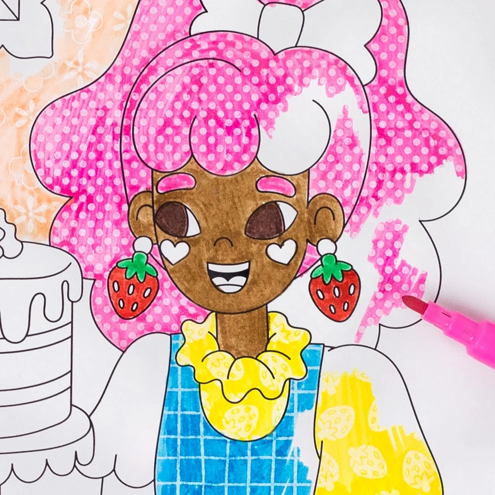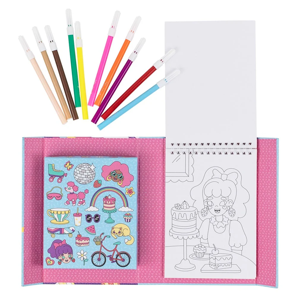 בערכה: 10 טושים, 24 דפי צביעה, קופסת אחסון
