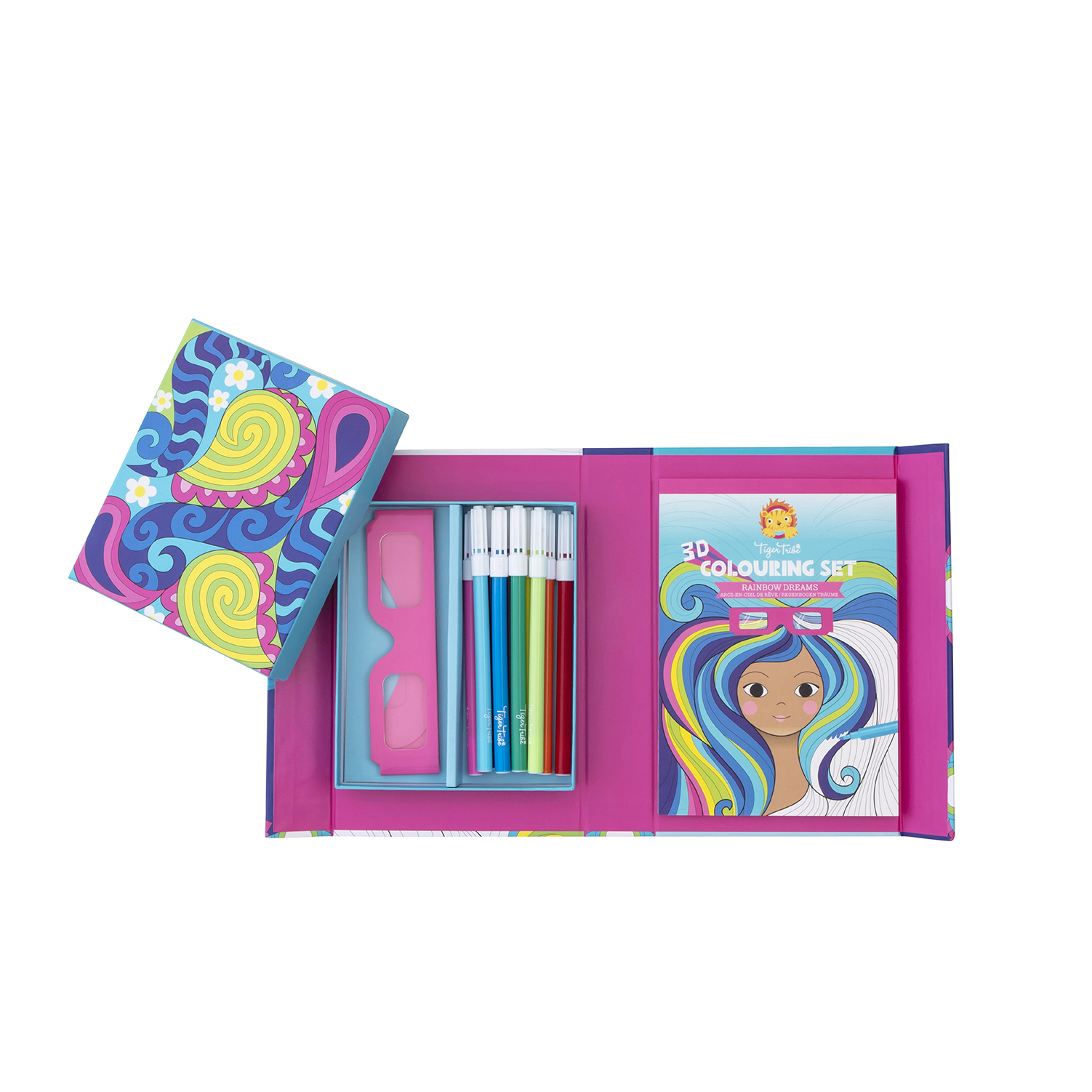 ערכת צביעה לילדים מיוחדת עם איורים תלת מימדים בצבעי הקשת. לאחר שמסיימים לצבוע, מרכיבים את משקפיי התלת ממד שבערכה ומתבוננים באשליה האופטית הגורמת לציור לצאת מהדף!