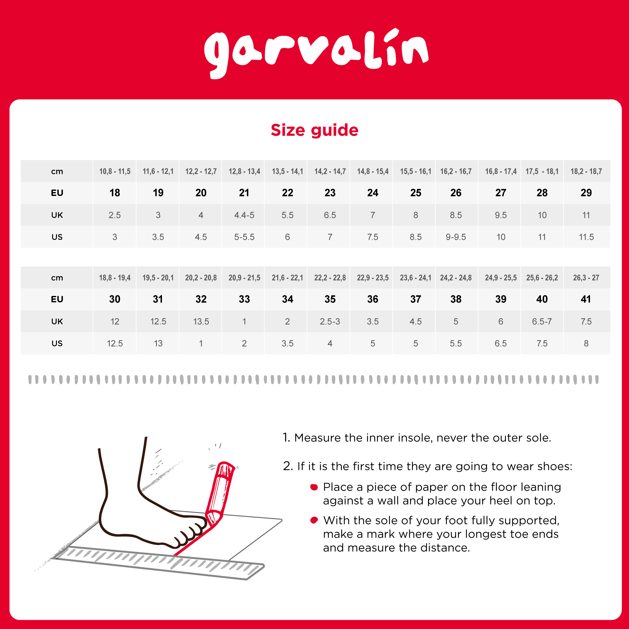** שימו לב לטבלה המצורפת בתמונות היא מיועדת לסנדלי GARVALIN BIOMECHANICS