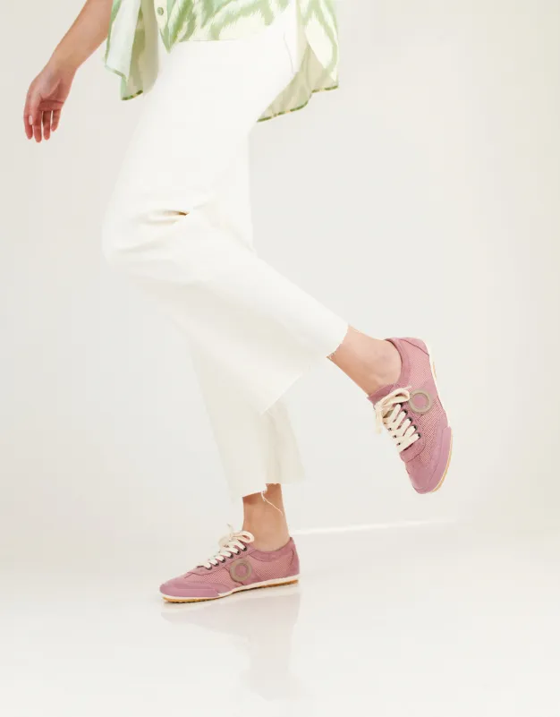 הנעליים עשויות בזמש בשילוב רשת נושמת ושרוכי כותנה, הכל בשילובים מפתיעים ומשמחים.