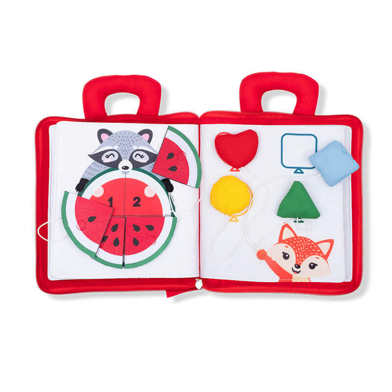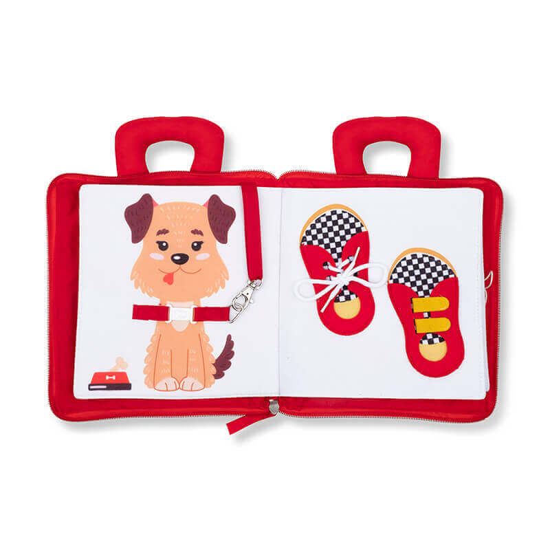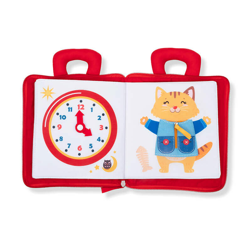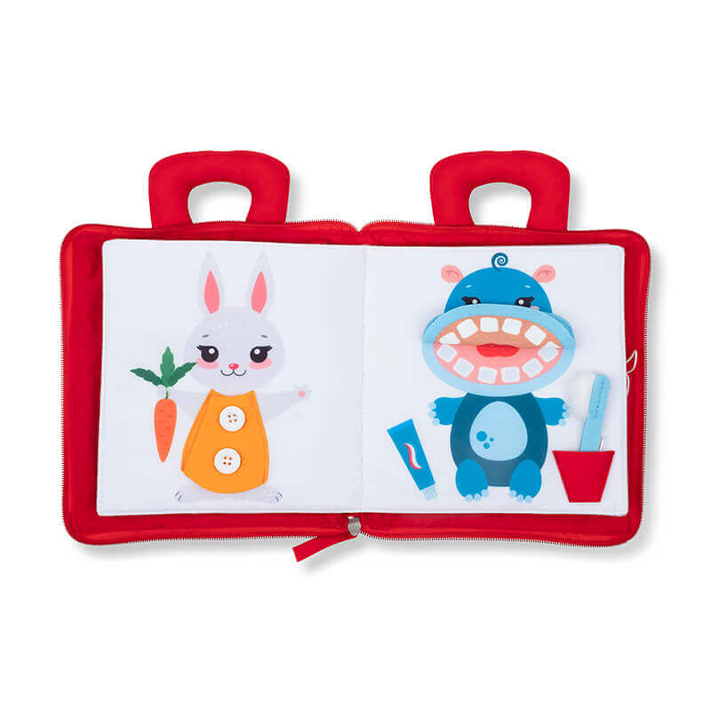 ספר פעילויות עם 10 פעילויות שונות וביניהן: צחצוח שיניים, התאמת צורות וצבעים, כפתור ועוד פעילויות יומיומיות החשובות להתפתחות הילד.