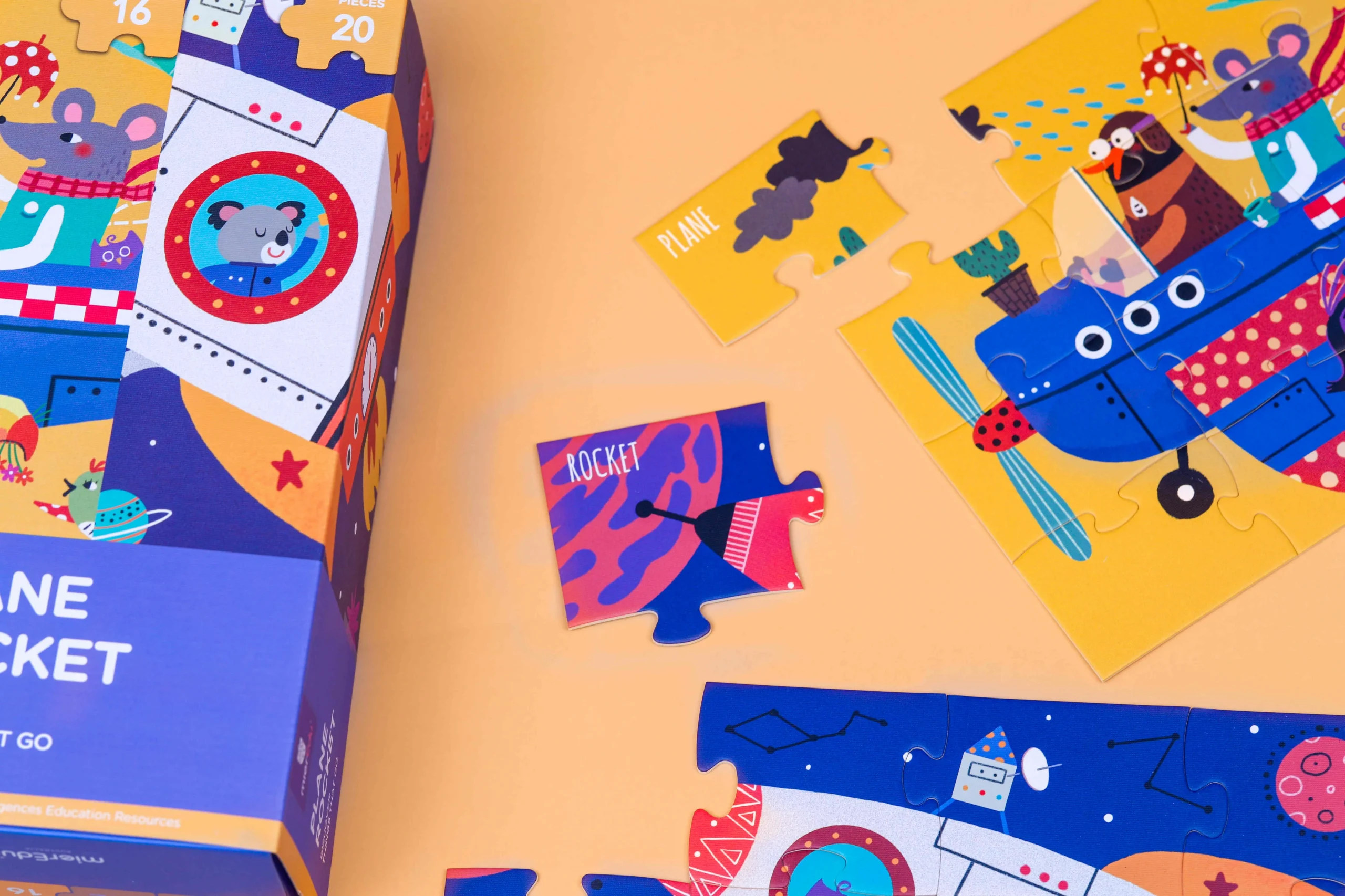 במארז תמצאו ארבעה פאזלים בגוונים שונים בנושאי תחבורה כאשר לכל פאזל מספר שונה של חלקים.