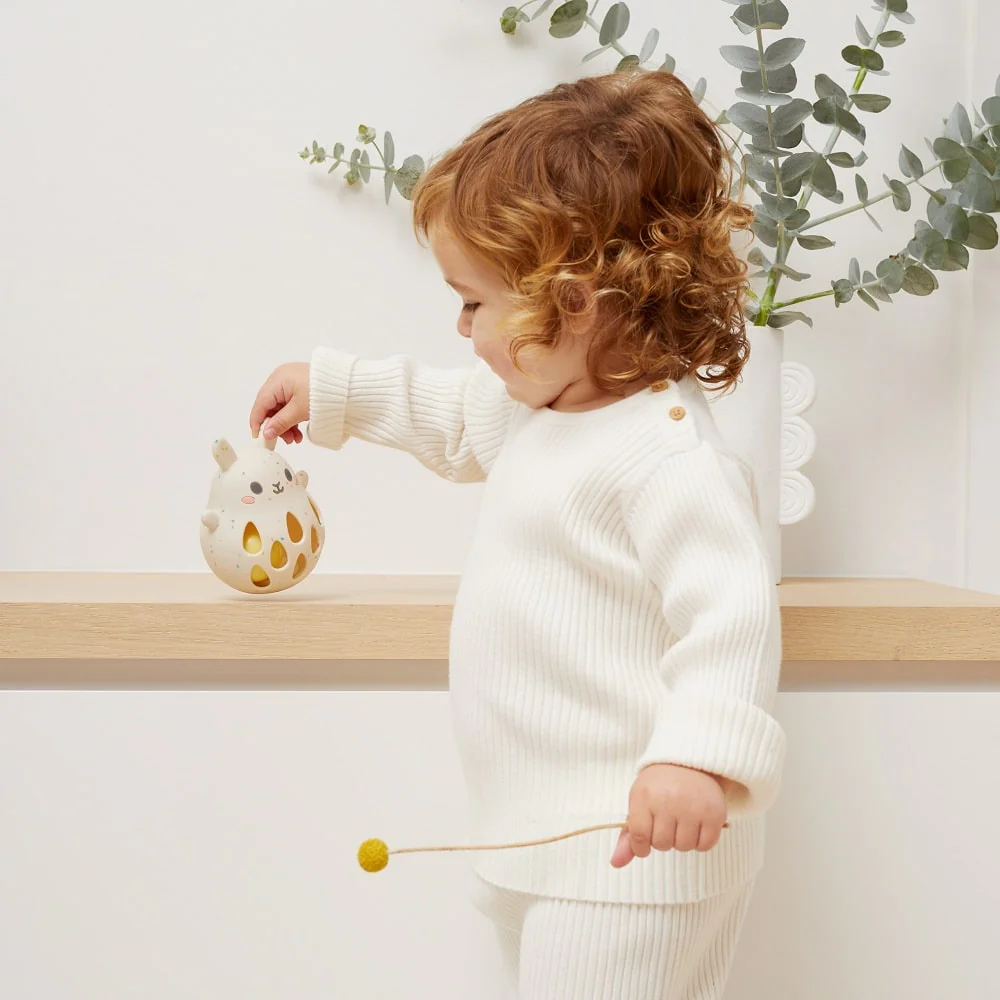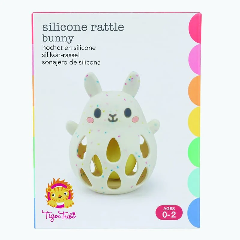 רעשן סיליקון מהמם בצורת ארנב, נוח מאוד לאחיזה לידיים קטנטנות.