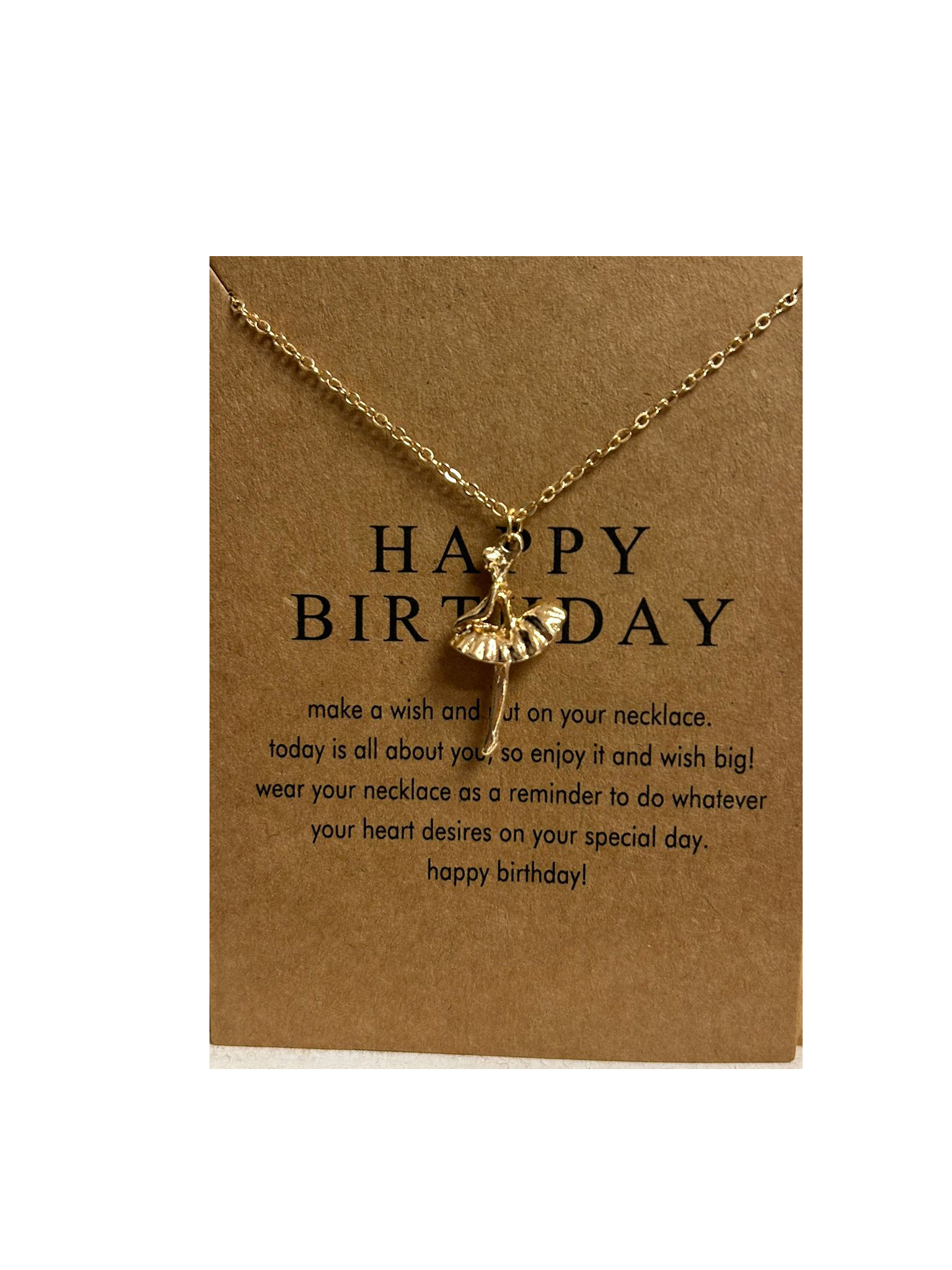 השרשת כוללת תליון עדין בצורת רקדנית וארוזה על גבי כרטיס קרטון עם מסר.