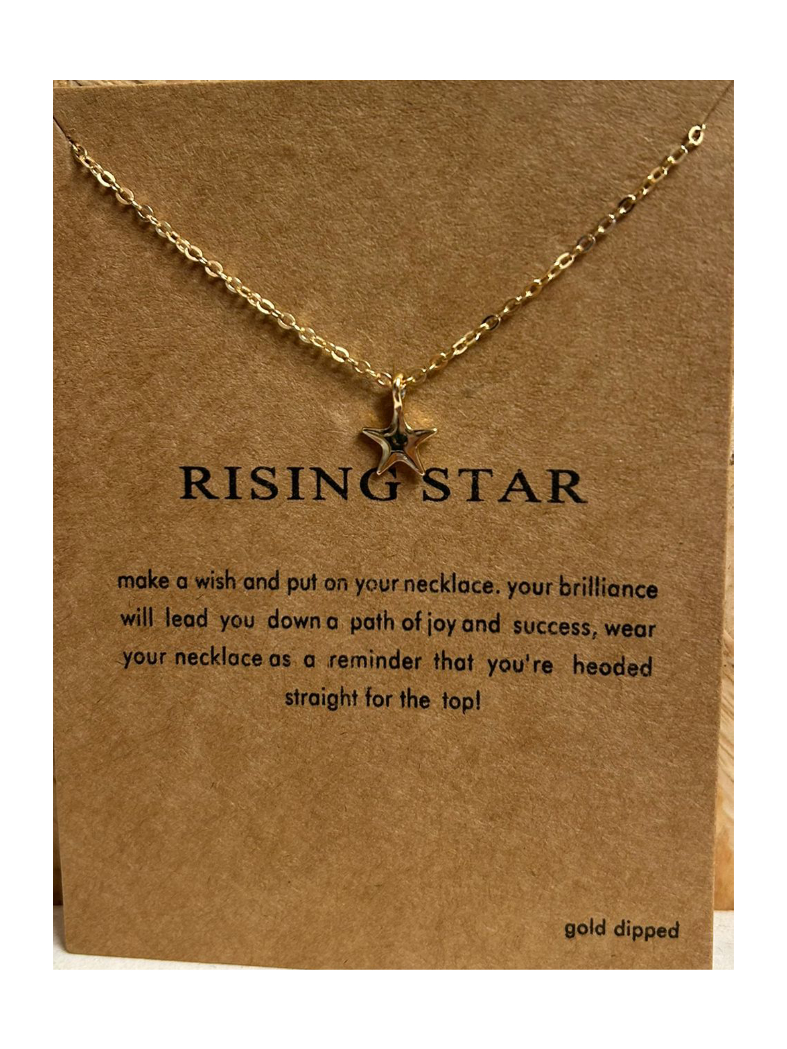השרשת כוללת תליון עדין בצורת כוכב וארוזה על גבי כרטיס קרטון עם מסר.