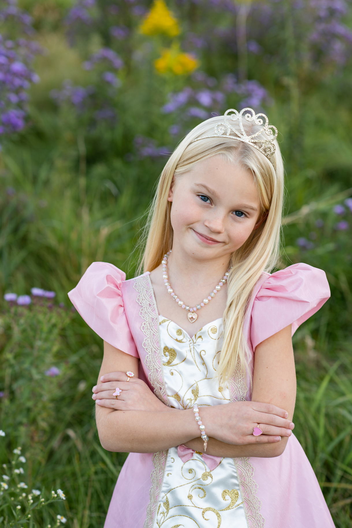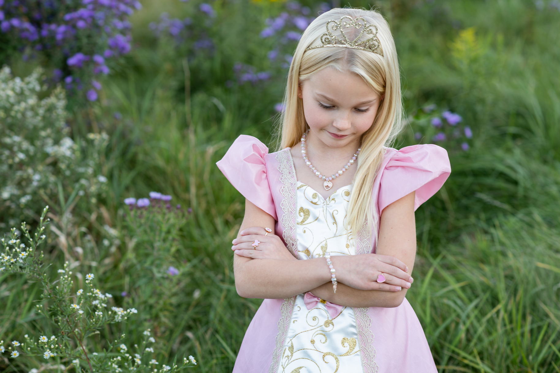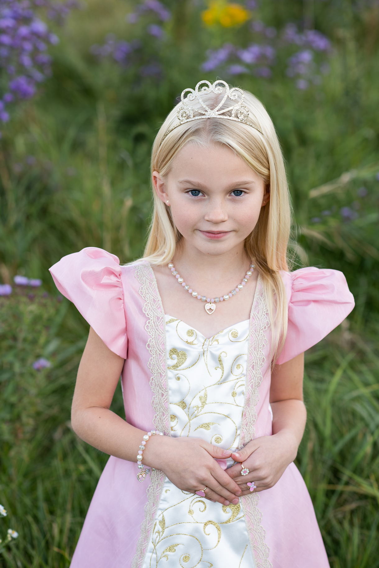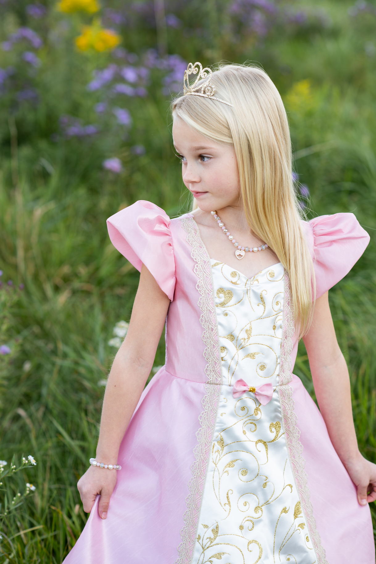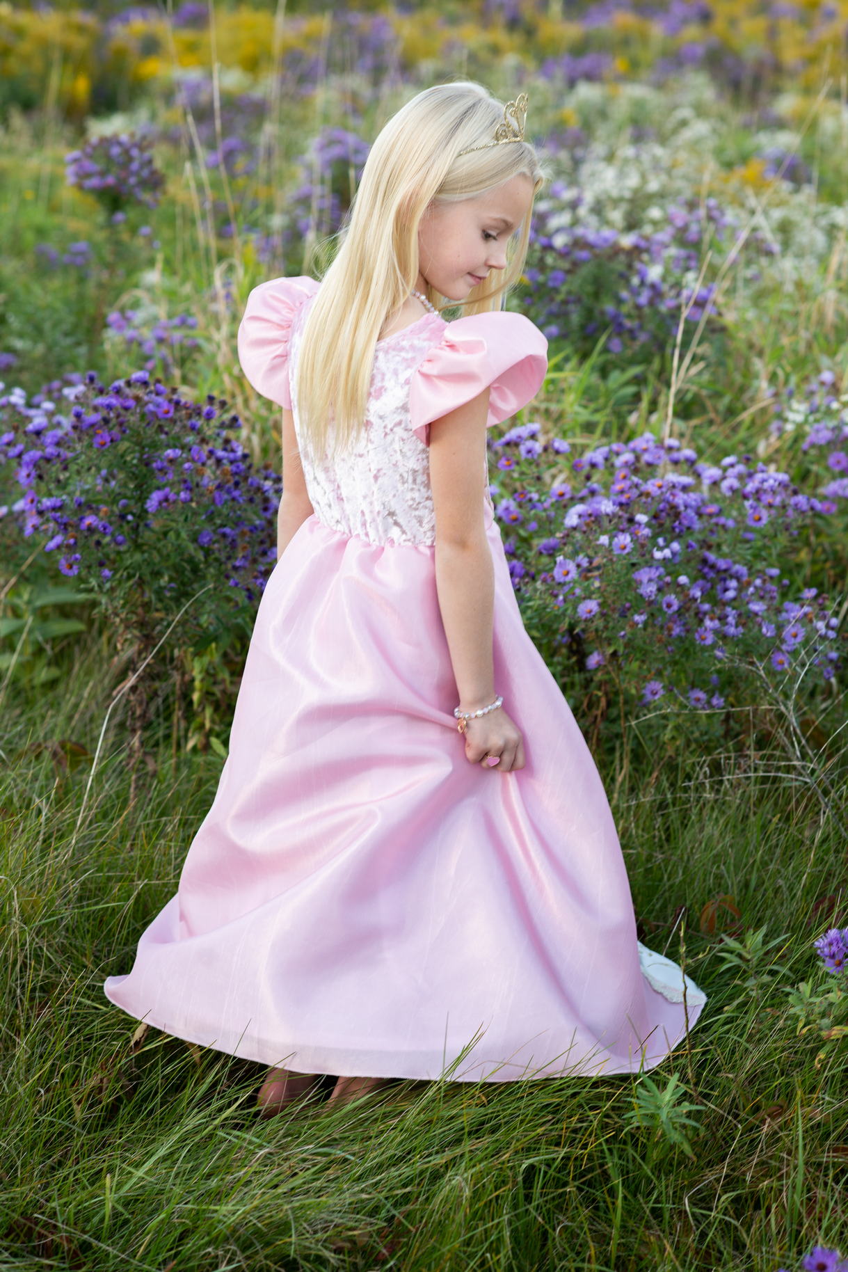 תחפושת נסיכה ורודה ומנצנצת הכוללת שמלה נסיכותית המיוחד – תחפושת פורים שתשמח ילדות.