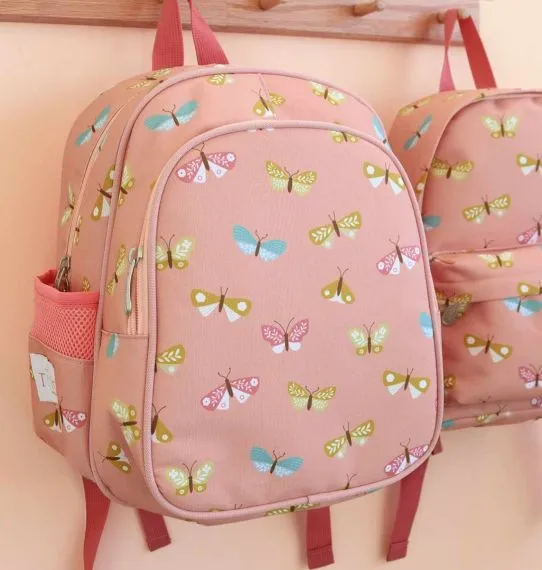 תיק גן גדול בצבע ורוד עם איור של פרפרים