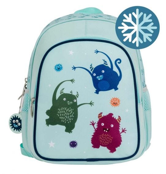 תיק גן גדול בצבע תכלת עם איור של מפלצות