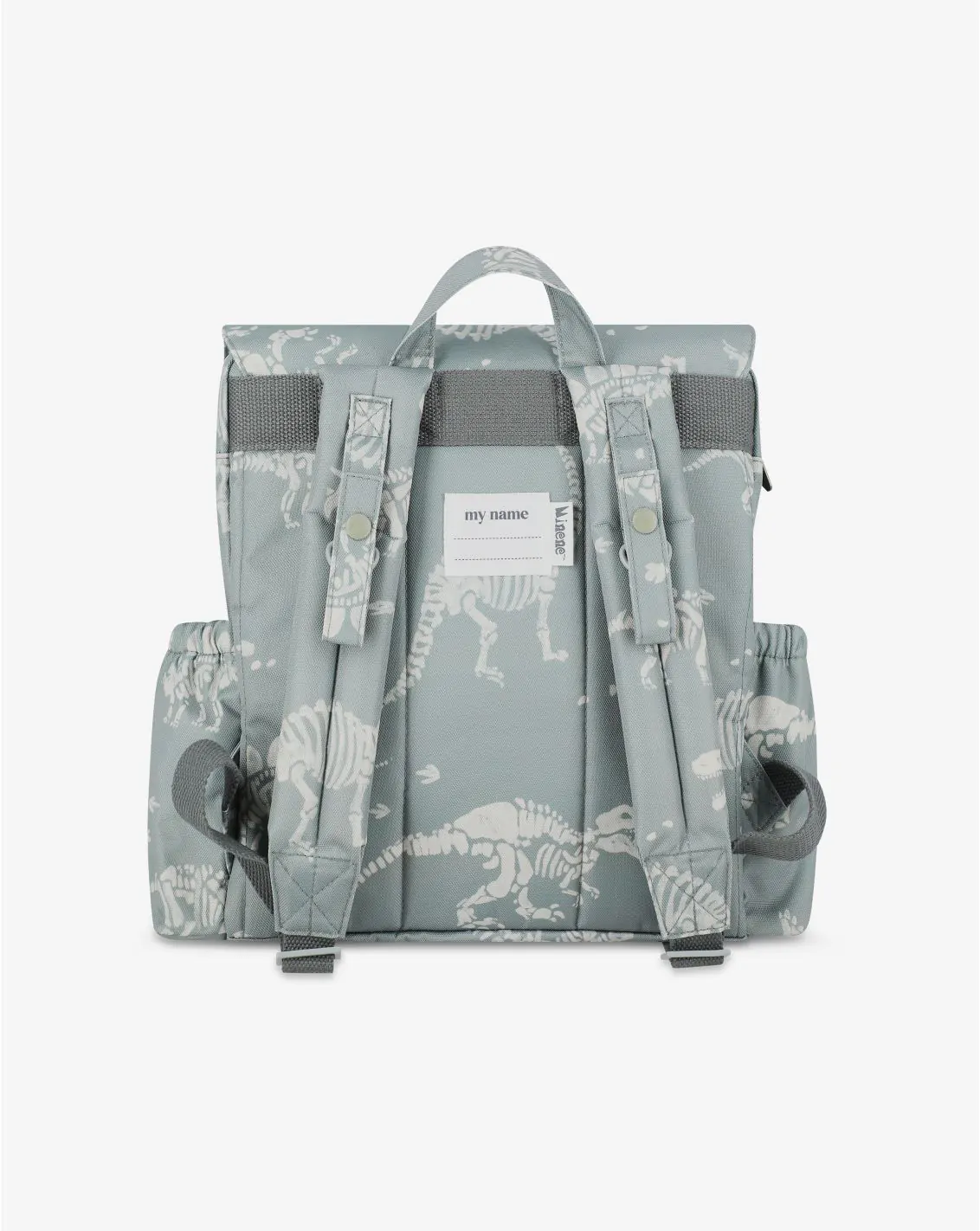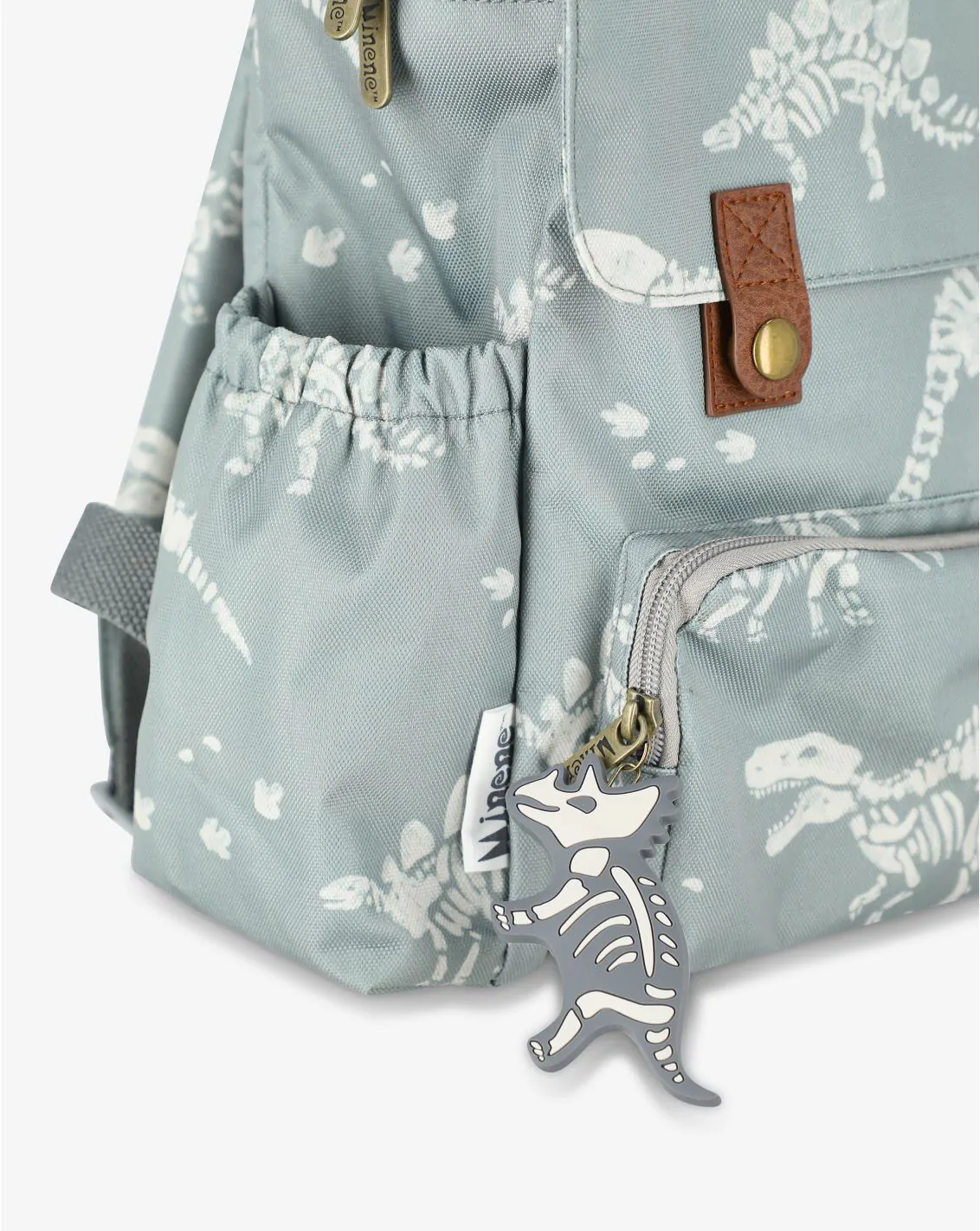 תיק גן גדול בצבע ירוק זית עם הדפס דינוזאורים.
