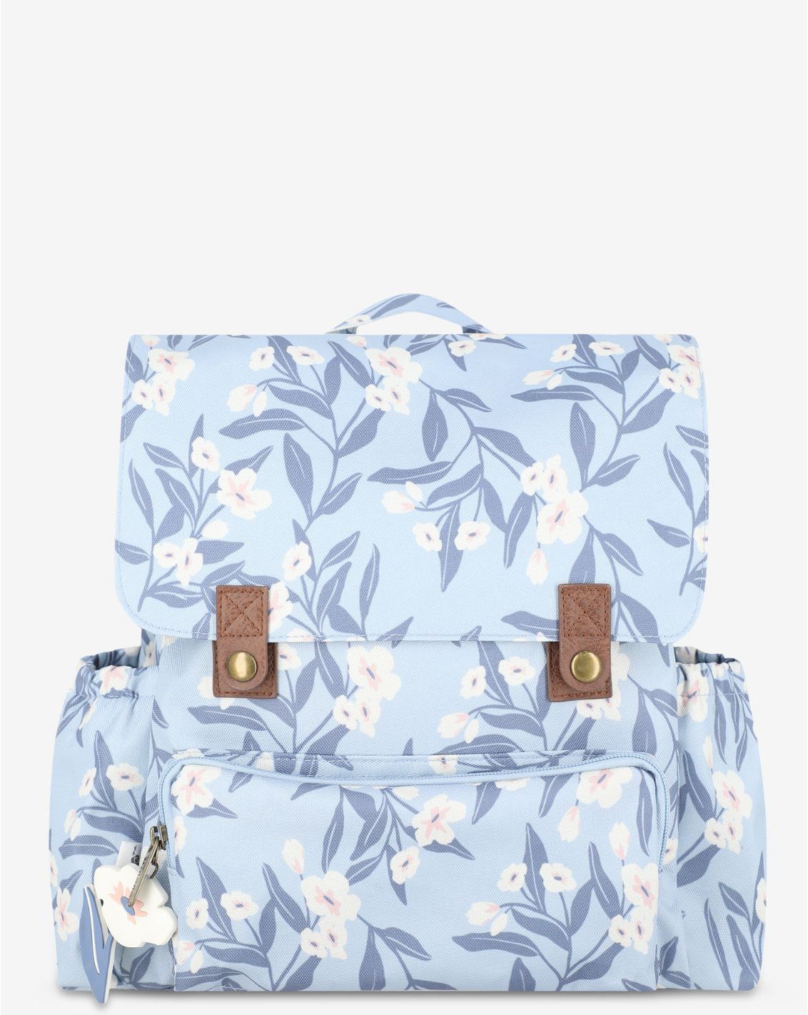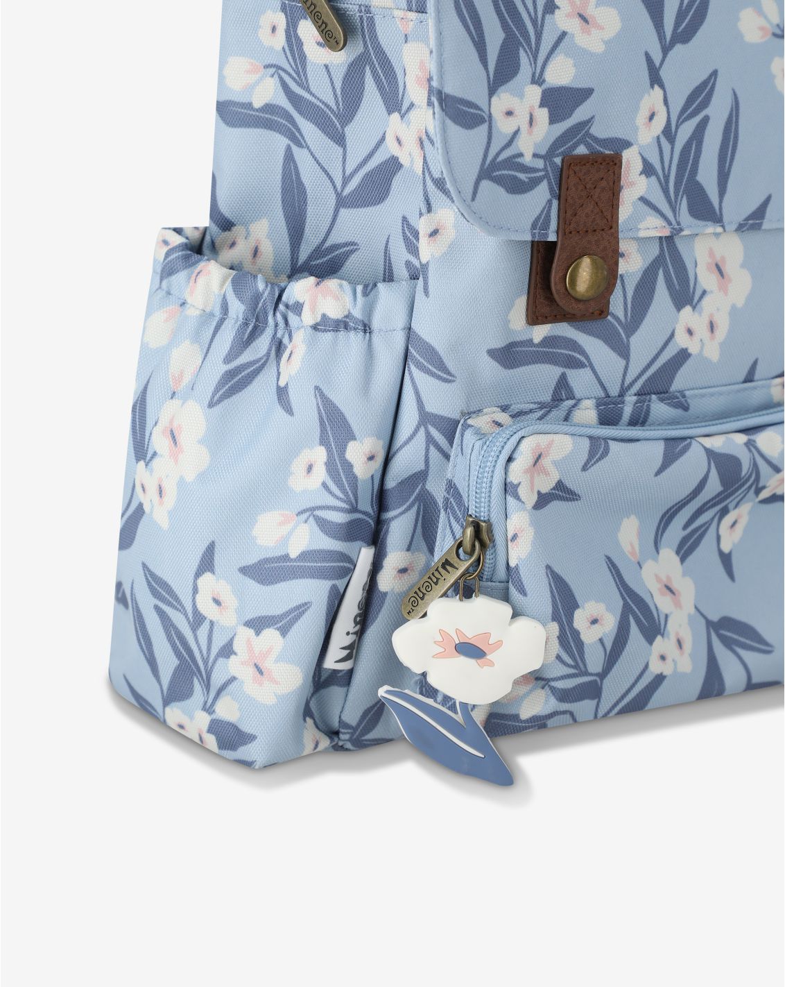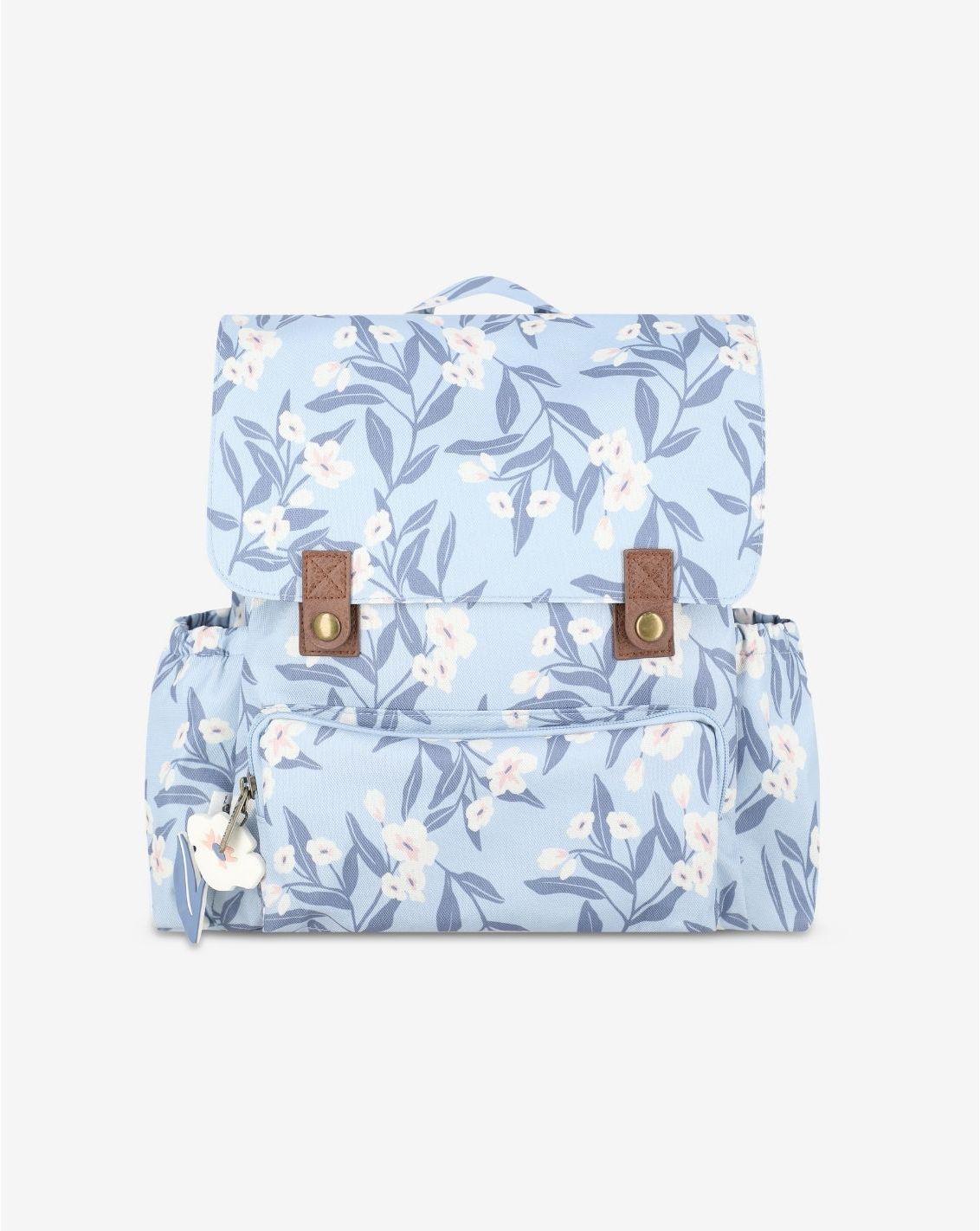 תיק גן גדול בצבע תכלת בהדפס פרחים.