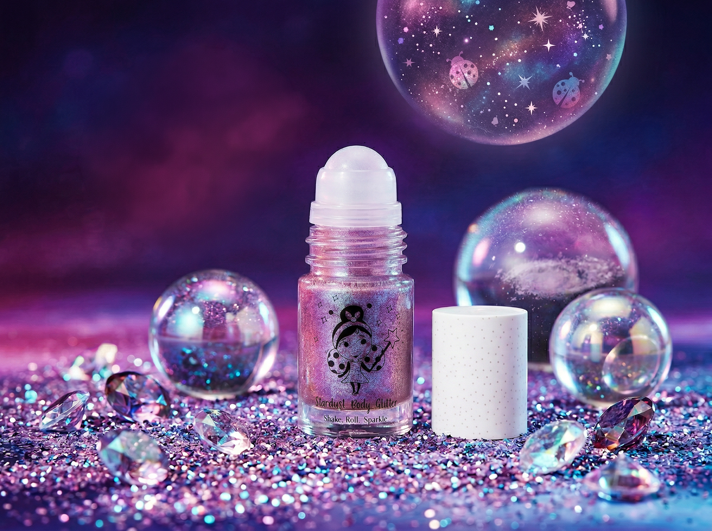בעזרת אפליקטור רול און נוח, הוא מספק דרך נקייה למרוח נצנצים על הגוף.