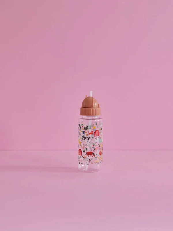 בקבוק עם קשית לילדים עשוי מפלסטיק איכותי עם איורים מקסימים.
