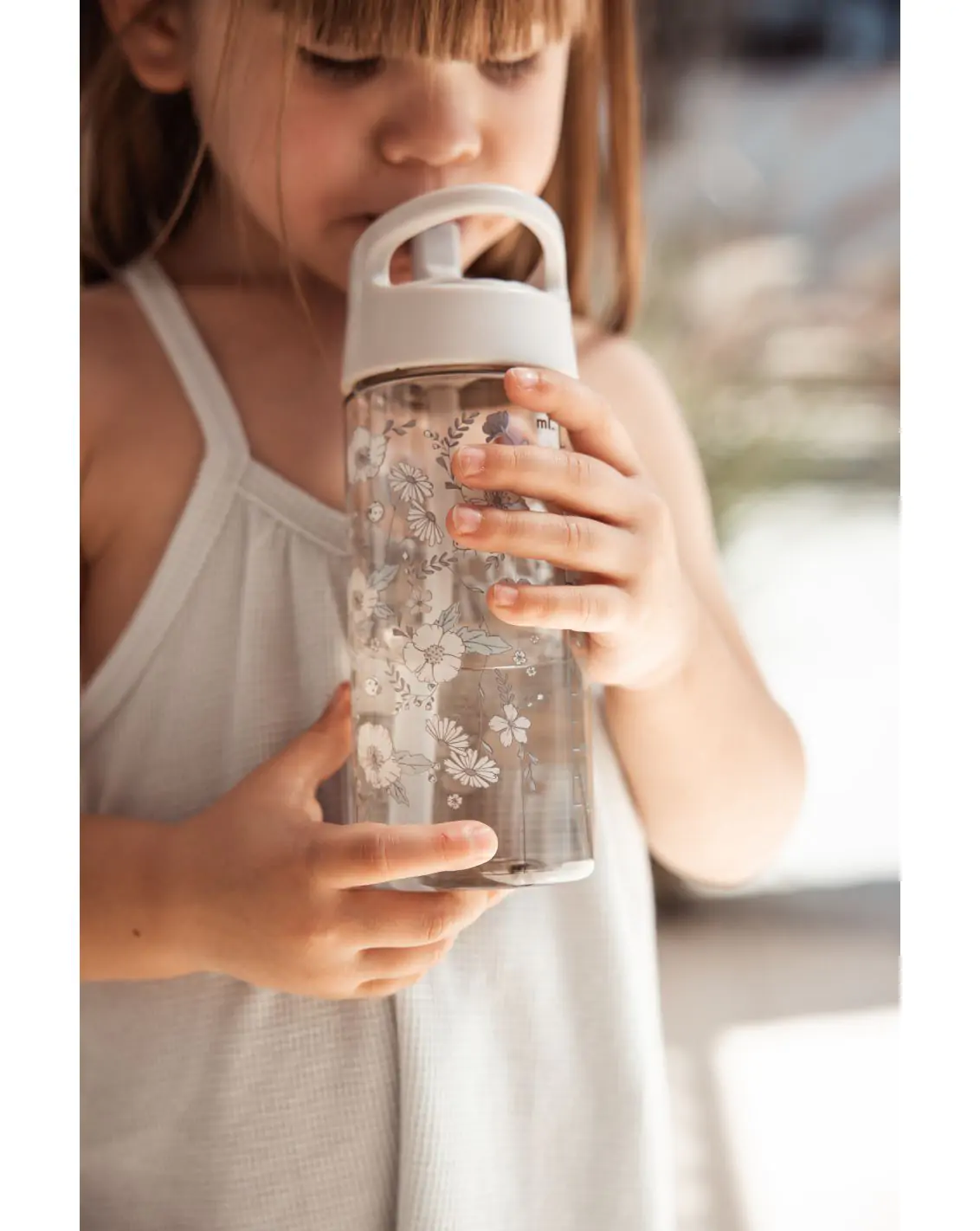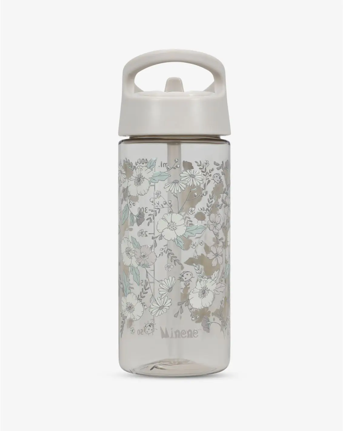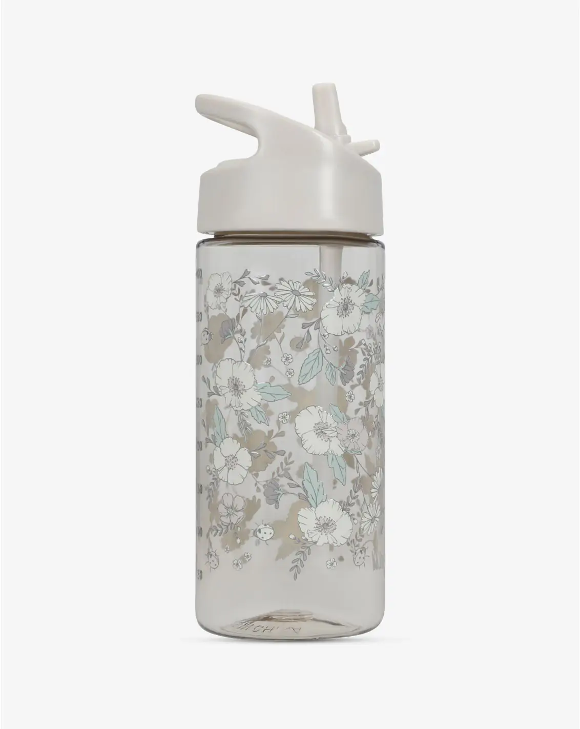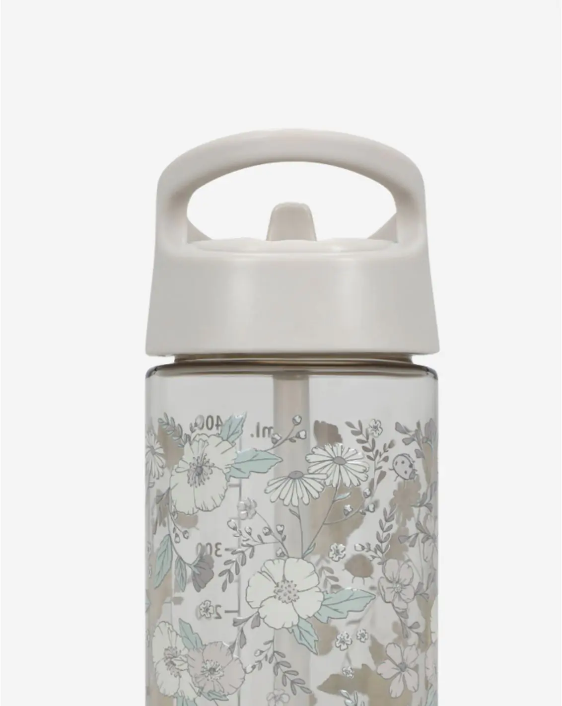 בקבוק מים לילדים עם קש בעיצוב מהמם של הדפס פרחוני.