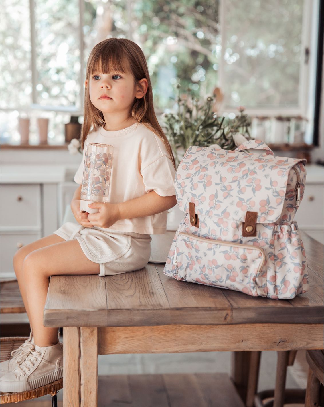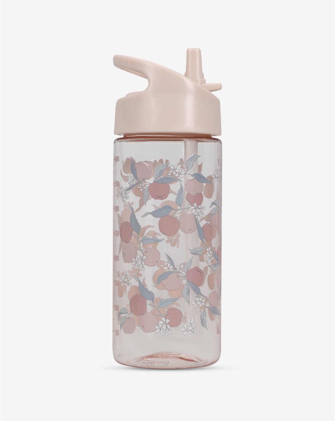 בקבוק מים לילדים עם קש בעיצוב מהמם של הדפס עלים ופירות.