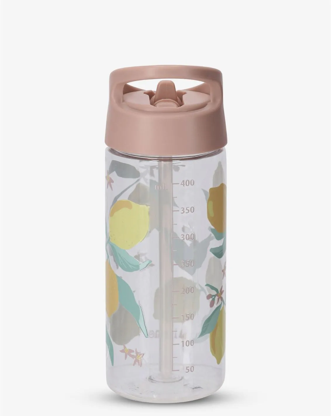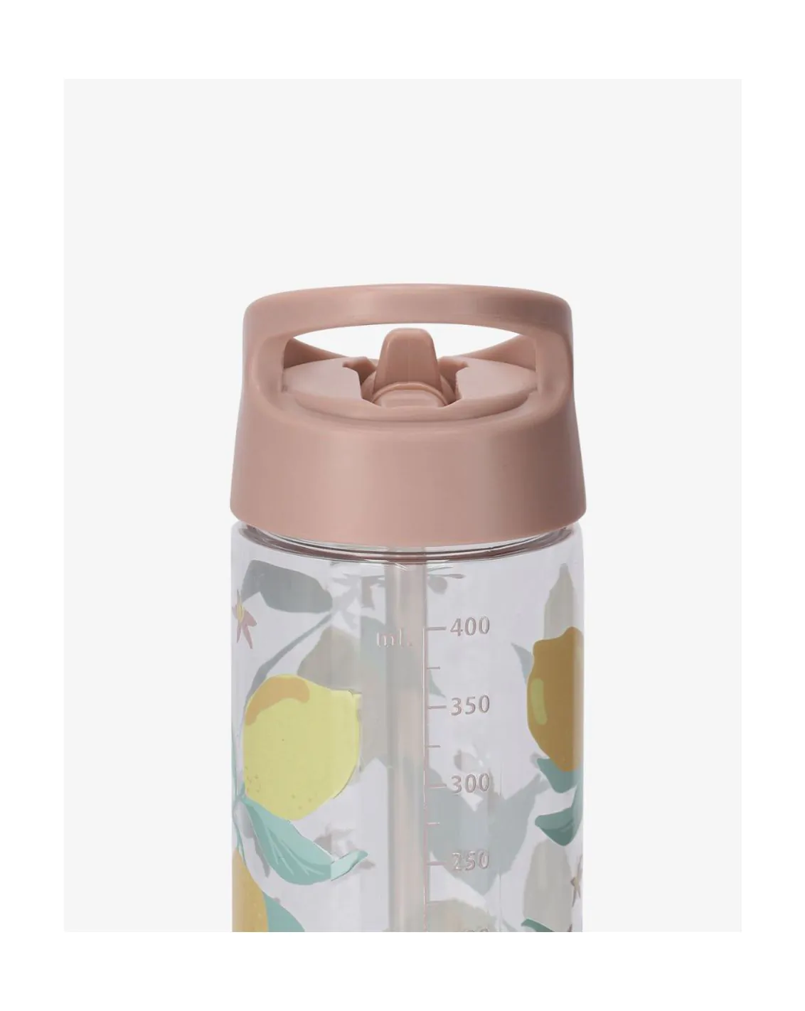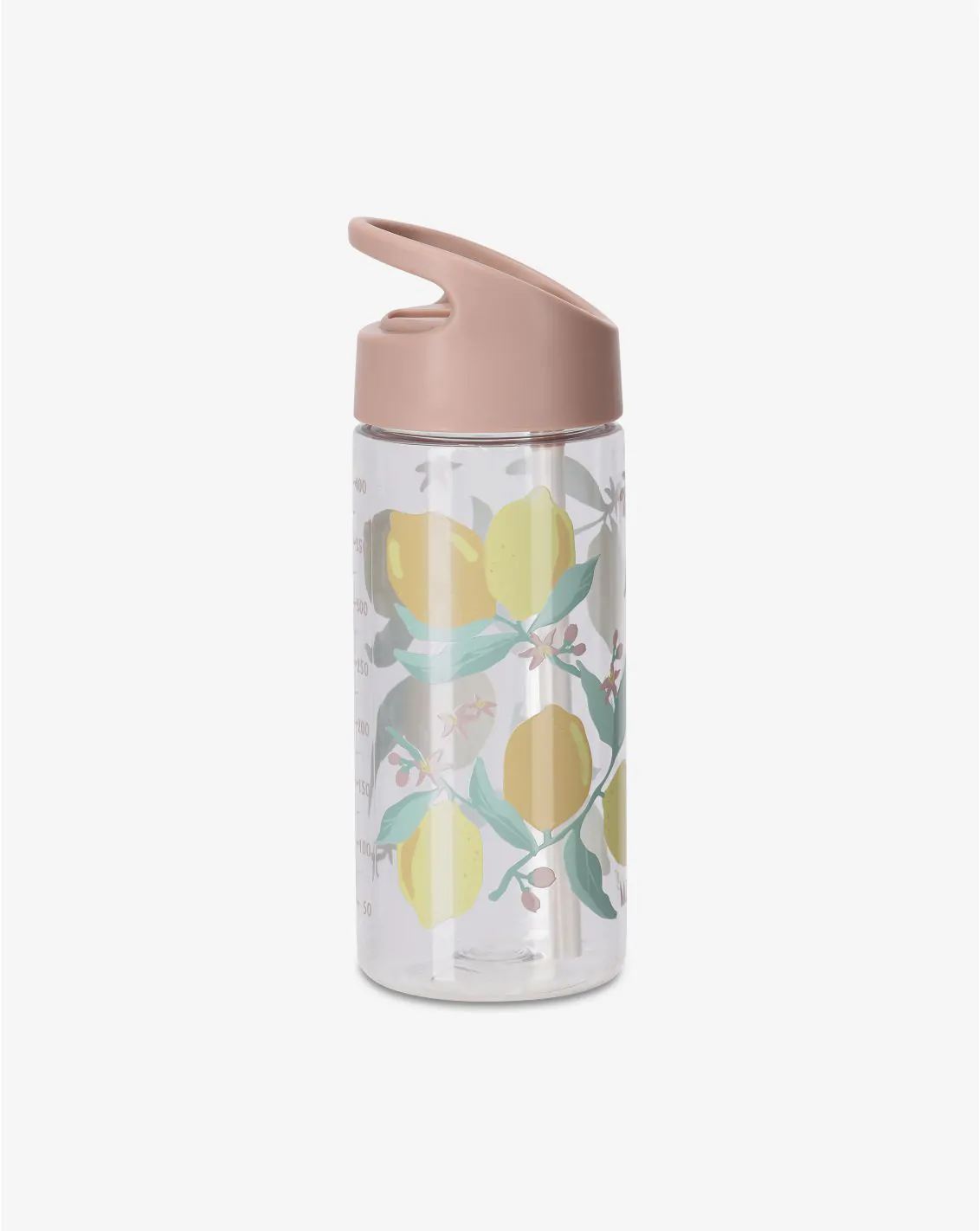 בקבוק מים לילדים עם קש בעיצוב מהמם של הדפס לימונים קיצי.