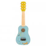 גיטרה מעץ לילדים מעוטרת בצבעים עדינים ואיור שועל