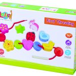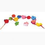 משחק השחלה לגיל שנה וחצי ומעלה הכולל חרוזים צבעוניים ויפים מעץ בצורות שונות.
