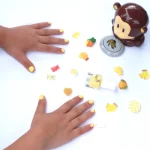 לק לילדות על בסיס מים בגוון צהבהב מנצנץ, חסר ריח, לק לילדות שיורד במים, ללא צורך באציטון ניתן להסרה כמו מדבקה מהציפורן.