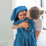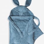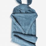 מגבת לתינוקות עם כובע וקשירה סביב צוואר המבוגר.