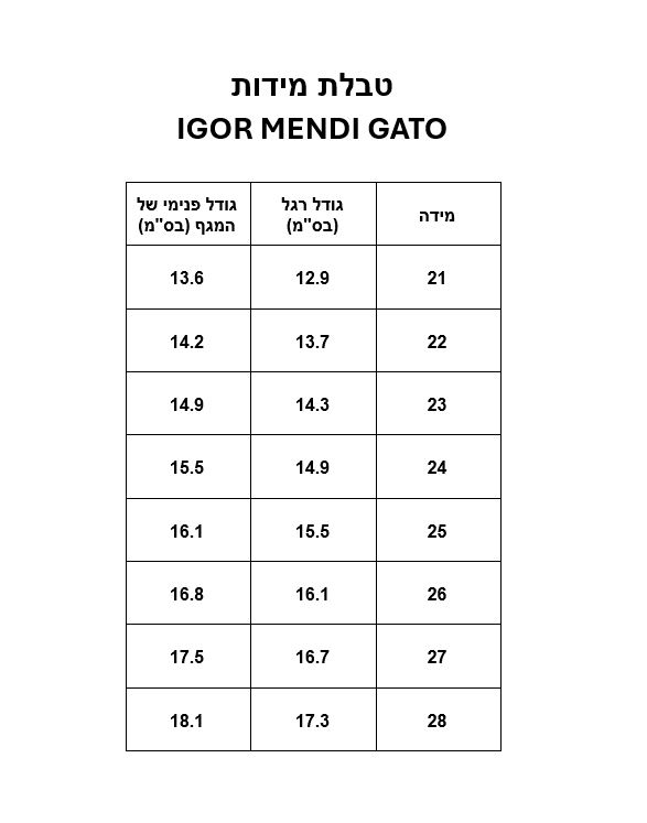העזרו בטבלת המידות המצורפת בגלרית התמונות לבחירת המידה המתאימה לילדכם