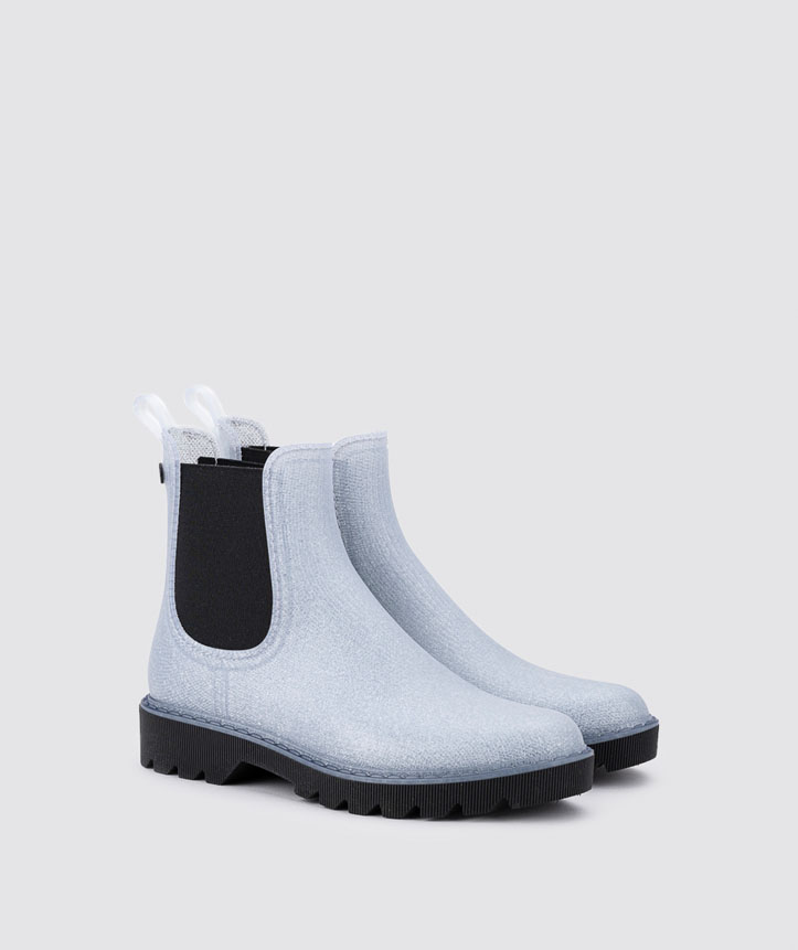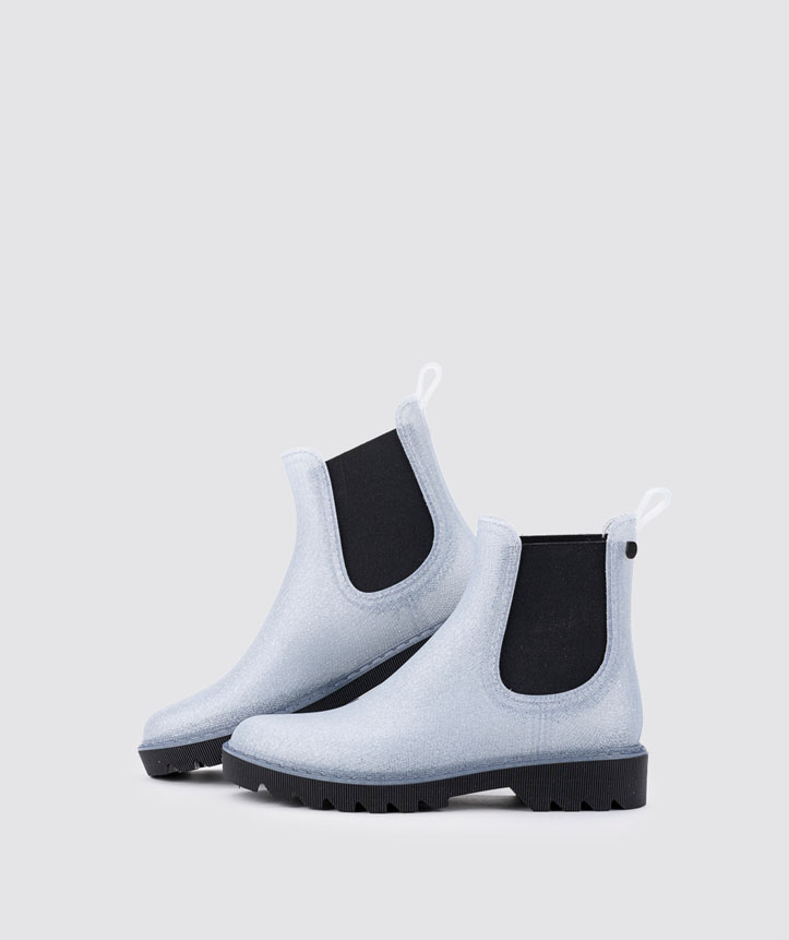 מגפי גשם לנשים גזרה נמוכה – כסף גליטר
