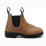 מגף לילדים המורכב מסולית PU קלה ונוחה וחלק עליון מעור נובוק, בעל רפידה נשלפת קלה ונוחה.