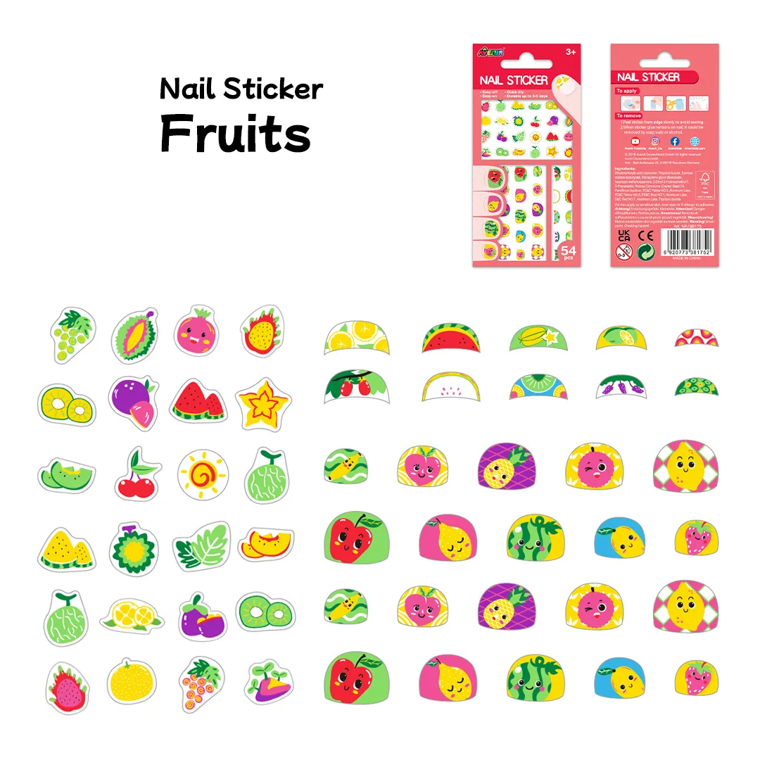 מדבקות ציפורניים לילדות שכל ילדה תשמח לקבל עם איורי פירות.