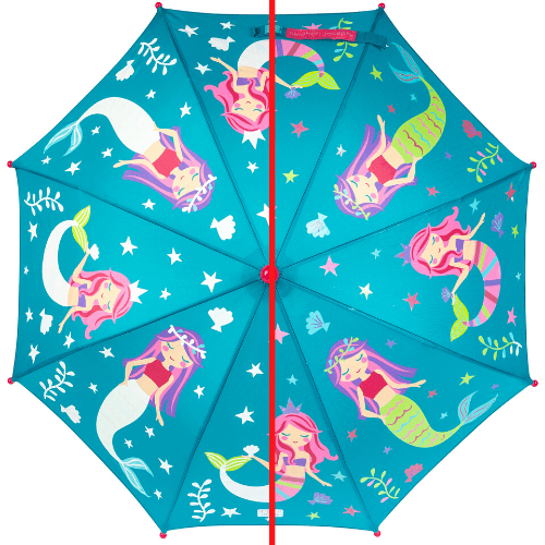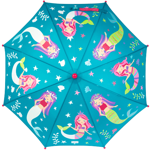 מטרייה מחליפה צבעים – בעיצוב בנות ים נפתחת בקלות עם פטנט מיוחד להגנה על האצבעות הקטנטנות.