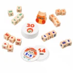 כל משתתפ.ת מקבל.ת 5 קוביות עץ באותו הצבע (4 קוביות עם מספרים וקוביה נוספת עם פעולות חשבון שונות, חיבור, חיסור, כפל וחילוק).