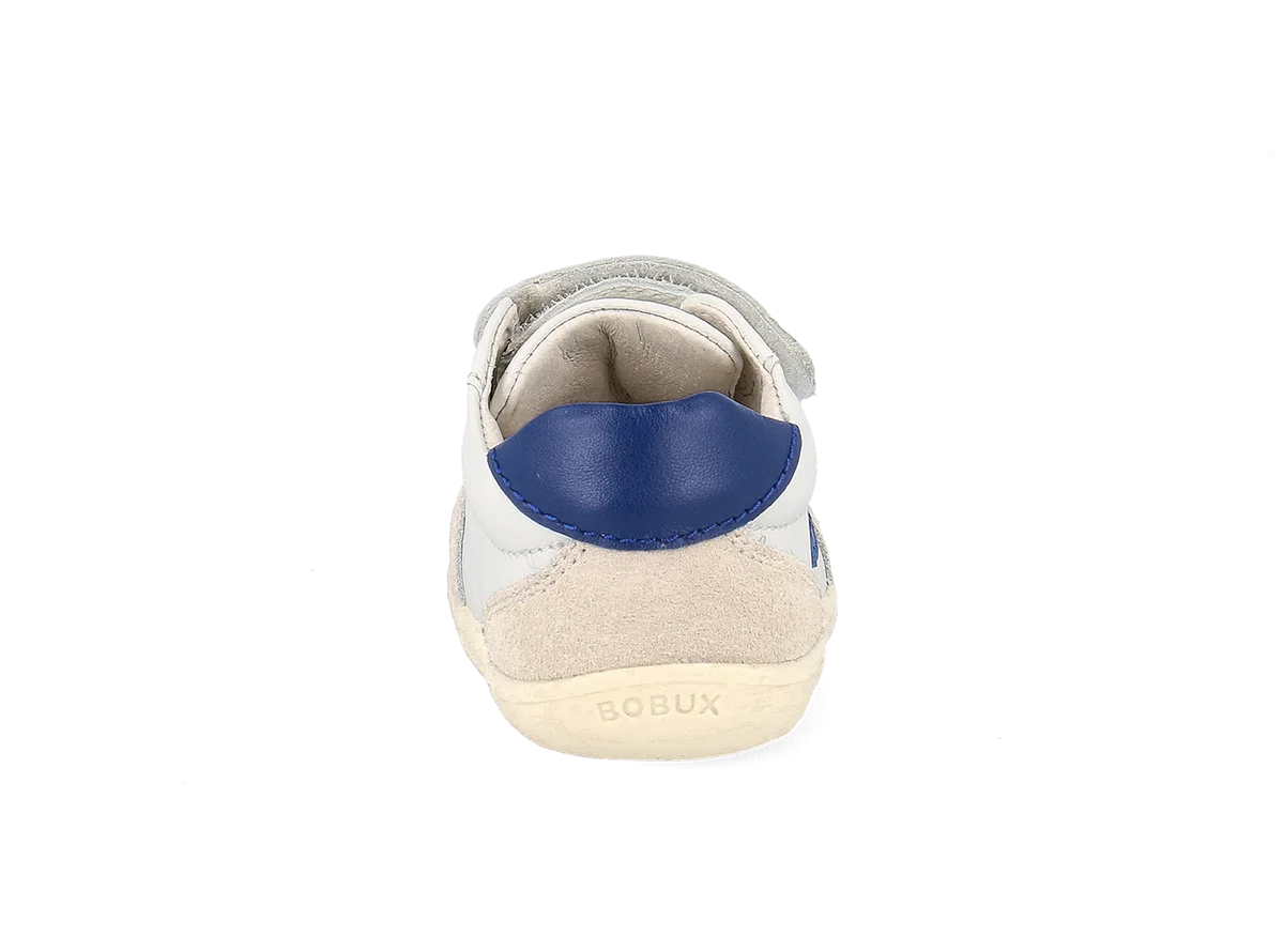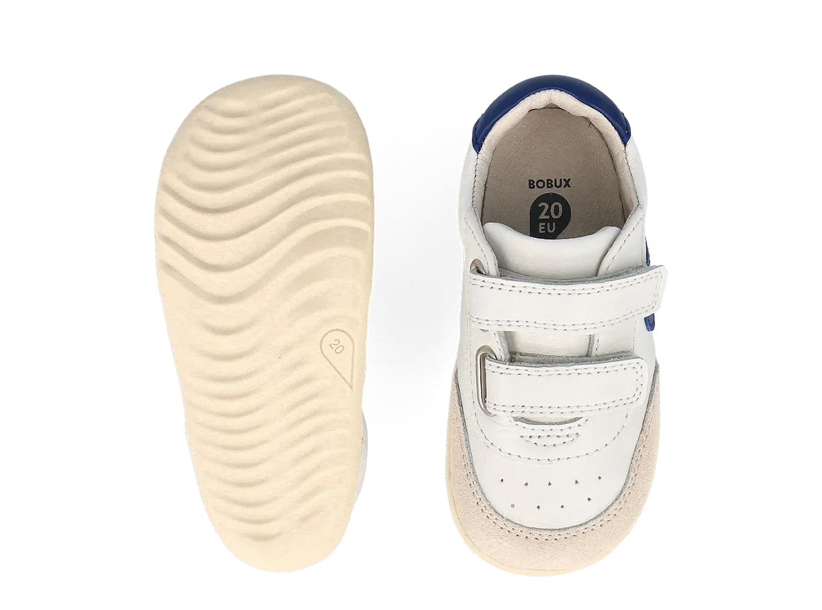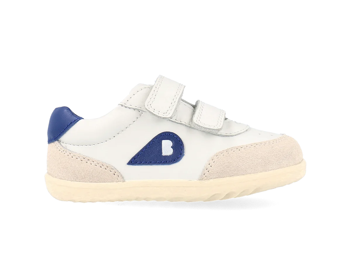 נעלי צעד ראשון בובוקס BOBUX – לבן כיתוב כחול