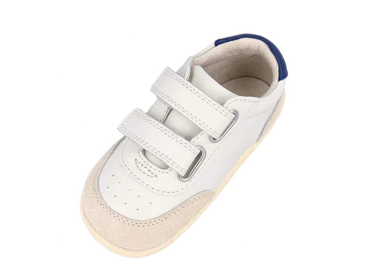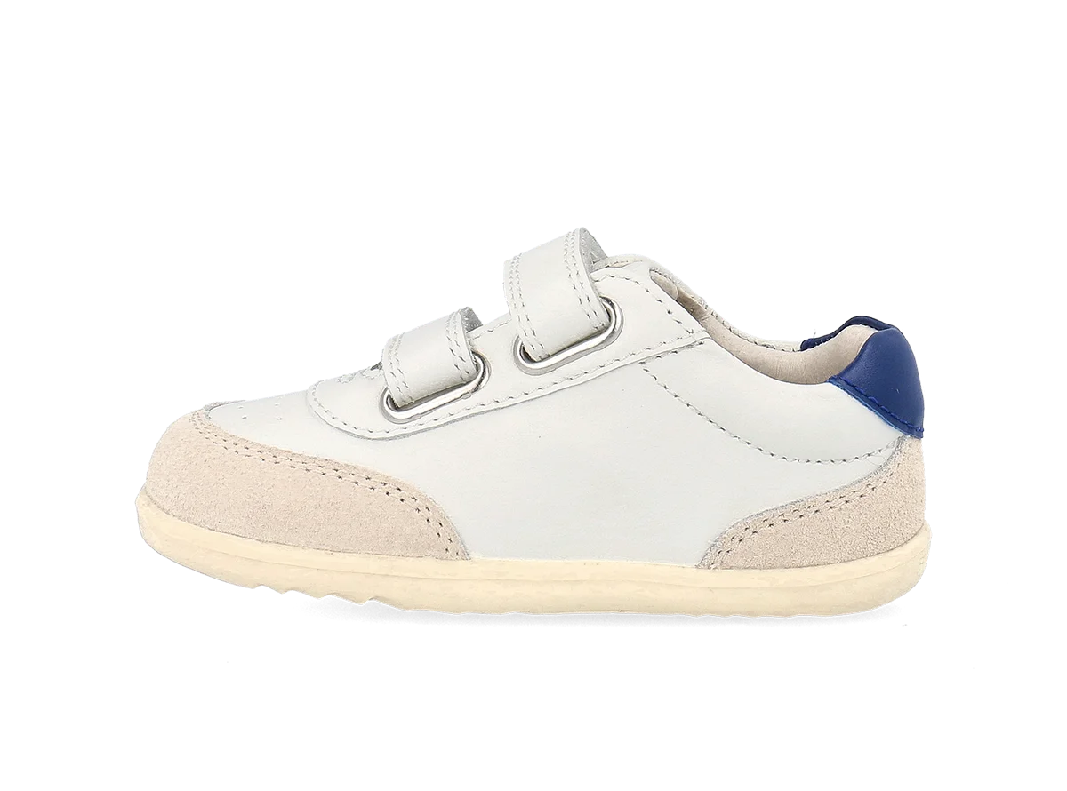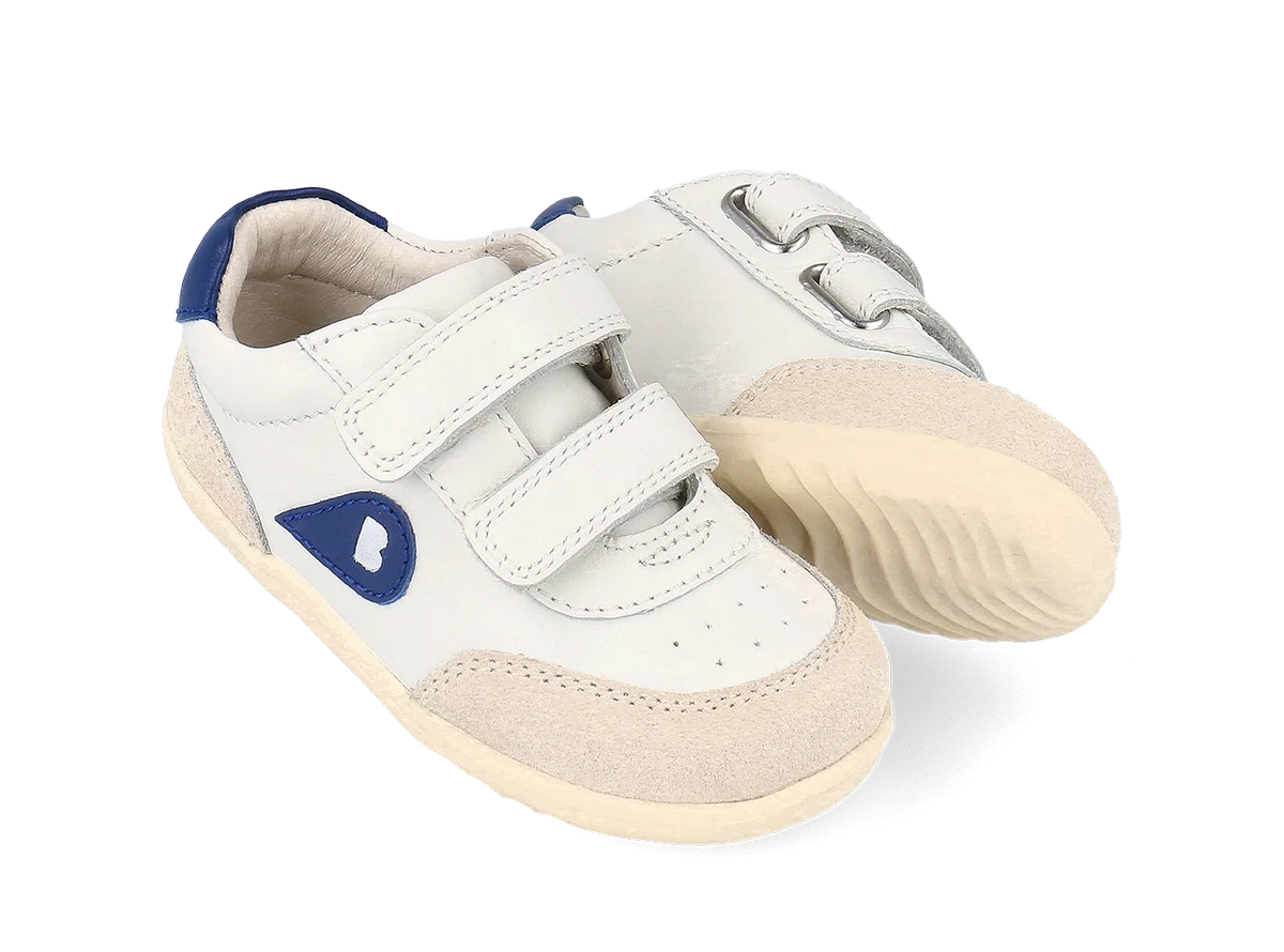 נעלי צעד ראשון בובוקס BOBUX – לבן כיתוב כחול