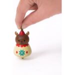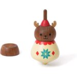 סביבון עץ מיוחד המעוצב בצורת אייל עם מעמד עץ.