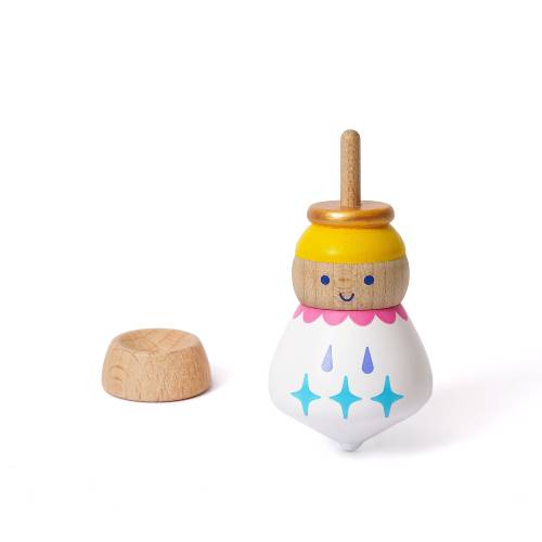 סביבון עץ מיוחד המעוצב בצורת מלאך עם מעמד עץ.