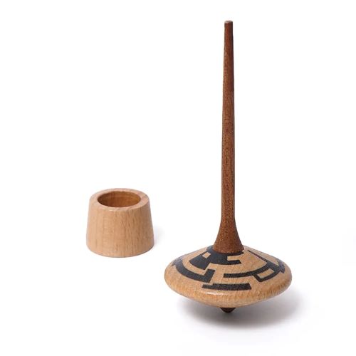 סביבון עץ מיוחד המעוצב עם הדפס מהמם ובעל מעמד עץ.