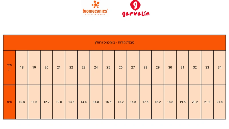 ** שימו לב לטבלה המצורפת בתמונות היא מיועדת לסנדלי GARVALIN