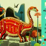 ערכת יצירות פסיפס דינוזאורים להדבקה בשיטת המוזאיקה, הדבקה של משבצות בצבעים שונים.