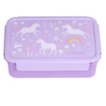 קופסת אוכל בנטו לילדים עם מגש תחתון ותאים נשלפים באיורים מתוקים של חד קרן.