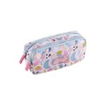 קלמר לבית ספר עם הדפס ירח וכוכבים שילדות אוהבות.