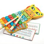 קלידי מתכת המפיקים צלילים נעימים שני מקלות הקשה מעץ, ותווים ל-4 שירים.