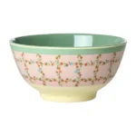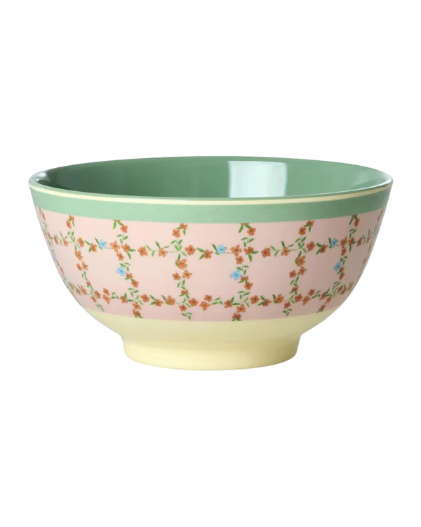 קערת מלמין מצויירת – פרחים במשבצות רקע ורוד רך